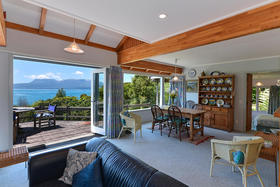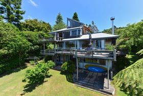 If you have been waiting for the right Lake Tarawera property to come along then it has arrived. Originally designed by and for a Landscape Architect and now fresh on the market since 1994, this property is one of those rare gems that wont be around for long. Situated in Te Karamea Bay on half an acre of freehold land facing East/West the lawn takes you right down to the lakefront and a white sandy weed-free beach.