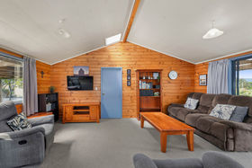 The family home is warm and cosy, heated by an efficient dual-chamber wood fire and visually warmed by the glow of timber finishes. Rural vistas are on show from every window.